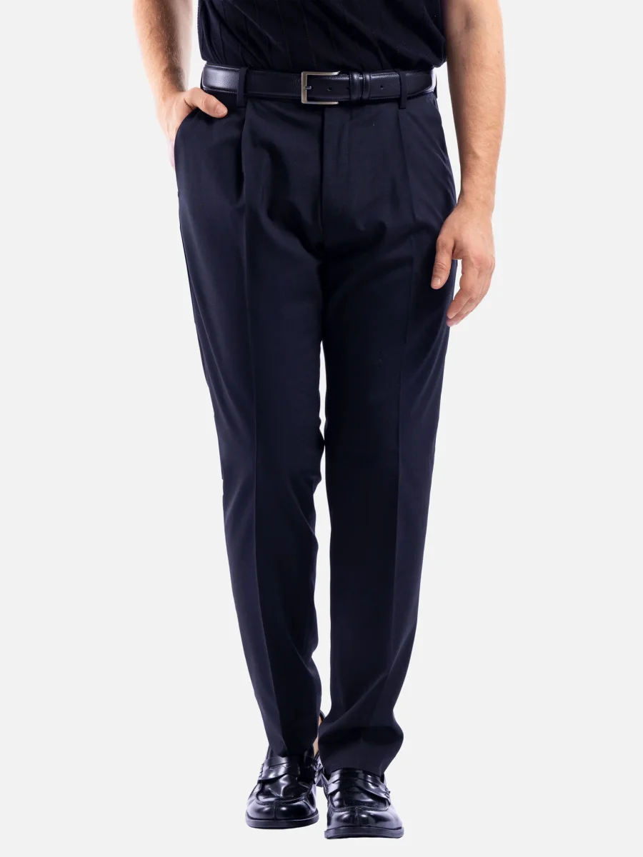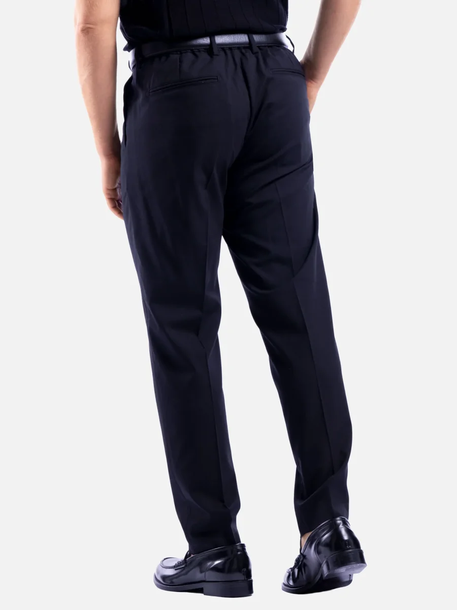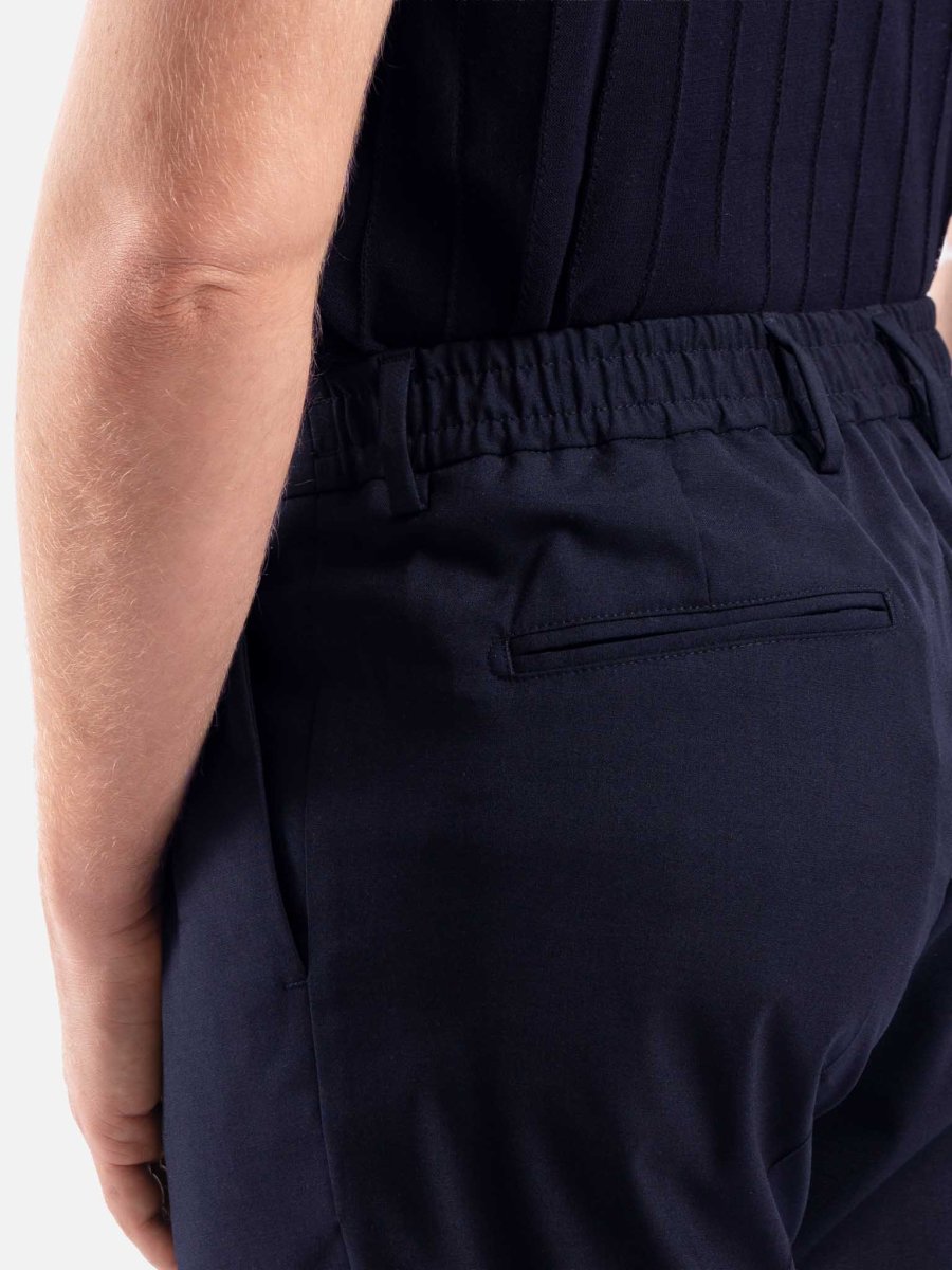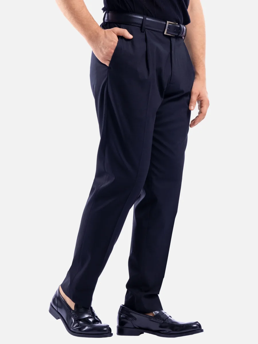 Pantalone Blu con Pinces e Vita Elasticizzata