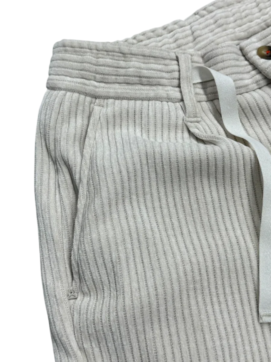 Pantalone uomo in velluto con polsini alle caviglie , nuova collezione BERNA 2025/26 vestibilitร regolare morbido velluto rigato lucido polsini nelle caviglie lacci in vita 98% Cotone 2% Elastico