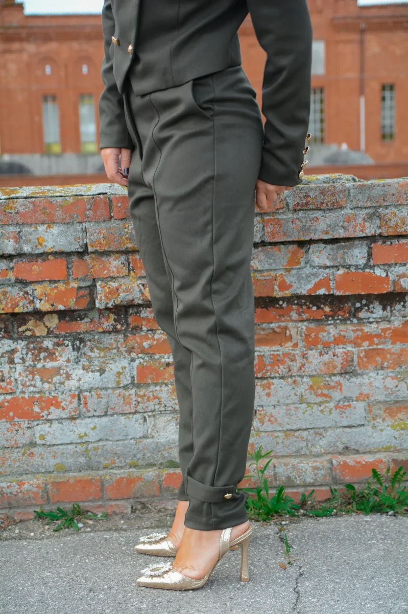 Pantaloni dal taglio dritto verdi militari, un capo di abbigliamento dal look ricercato ed esclusivo. Caratterizzati da una linea semplice ed un bottone sulla caviglia, danno un tocco sartoriale ed originale al tuo outfit.
