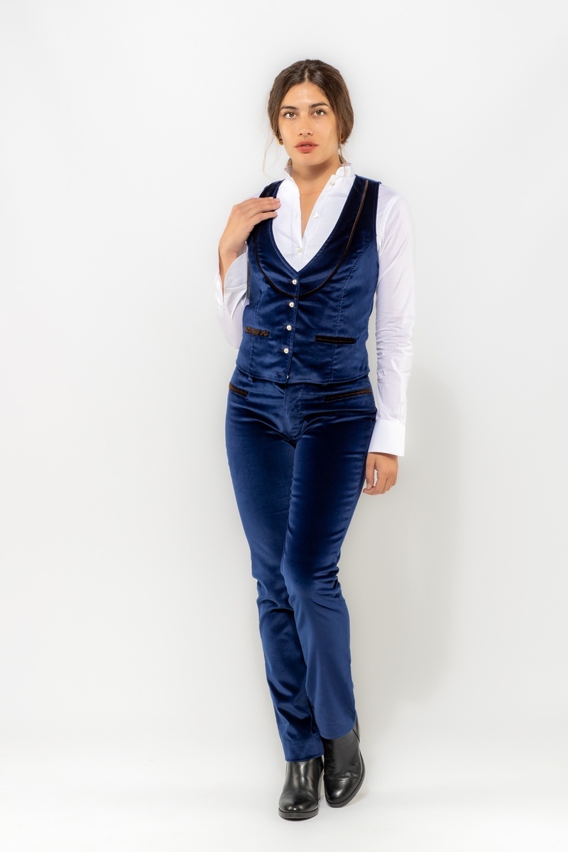 Pantaloni Sardi Donna Velluto Avio