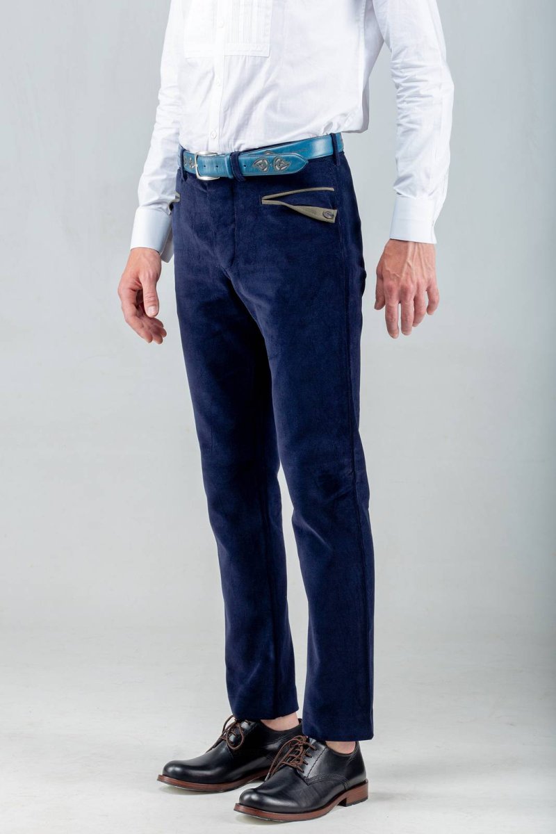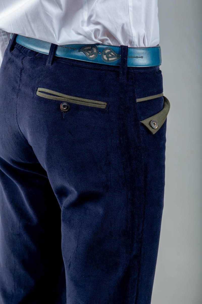 Pantaloni Sardi Uomo Shardana Velluto Rasato Blu