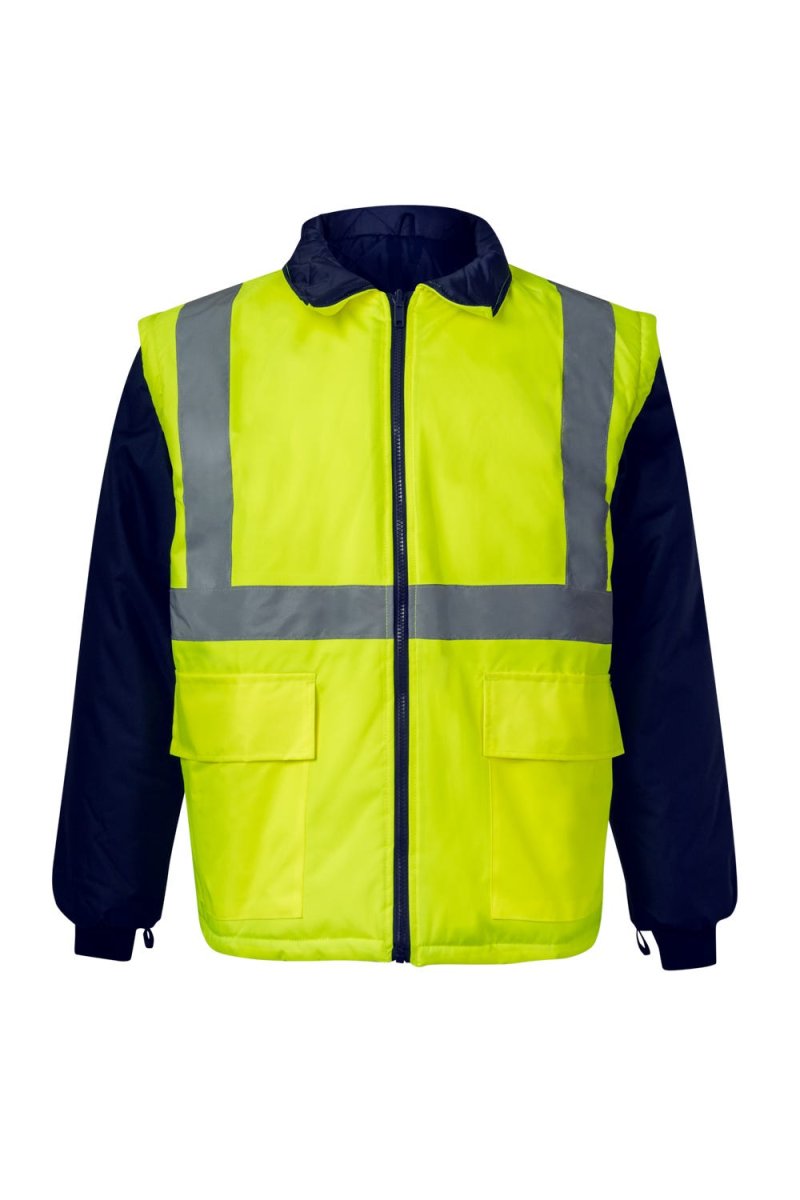 Parka 4 in 1 a/v. Quattro indumenti in uno: Parka, Impermeabile, Giubbotto e Gilet. Alta visibilità. EN20471 classe 2 EN14058 EN343