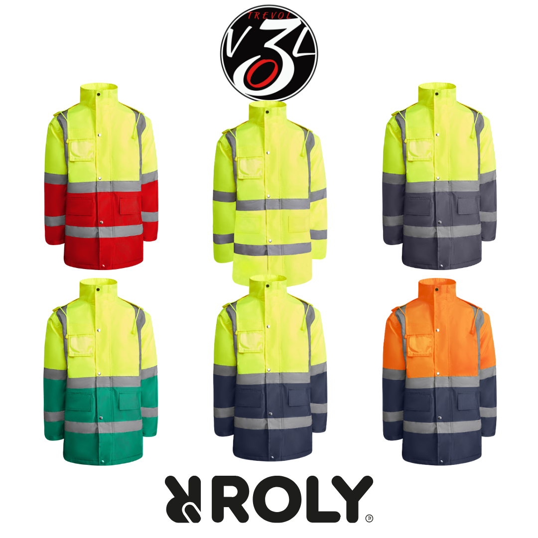 Parka trapuntato combinato ad alta visibilità con cappuccio arrotolabile con coulisse regolabile, due strisce orizzontali riflettenti su busto e maniche e strisce verticali riflettenti sulle spalle, tasca sul petto con patta e chiusura a velcro e porta carte d’identità, due tasche anteriori con patta e tasca interna con cerniera. Polsini nascosti sulle maniche in maglia a coste 1X1, abbottonatura centrale con bottoni in metallo per la chiusura e zip centrale a doppio cursore.