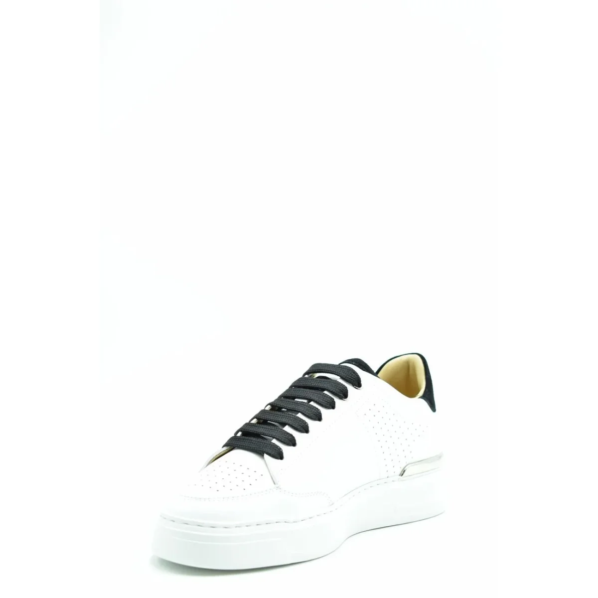 Scopri il luxury tedesco di Philipp Plein con queste sneakers bianche in pelle 100% premium con lacci eleganti. Un capo che unisce design audace e qualità superiore per un look impeccabile e stile distintivo.