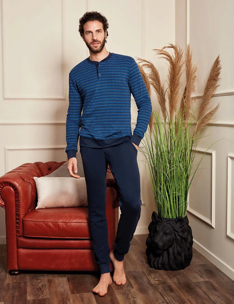 Serafino 3 bottoni manica lunga con polsini sul fondo della manica. Pantalone lungo con polsini sul fondo. Composizione : 100%cotone