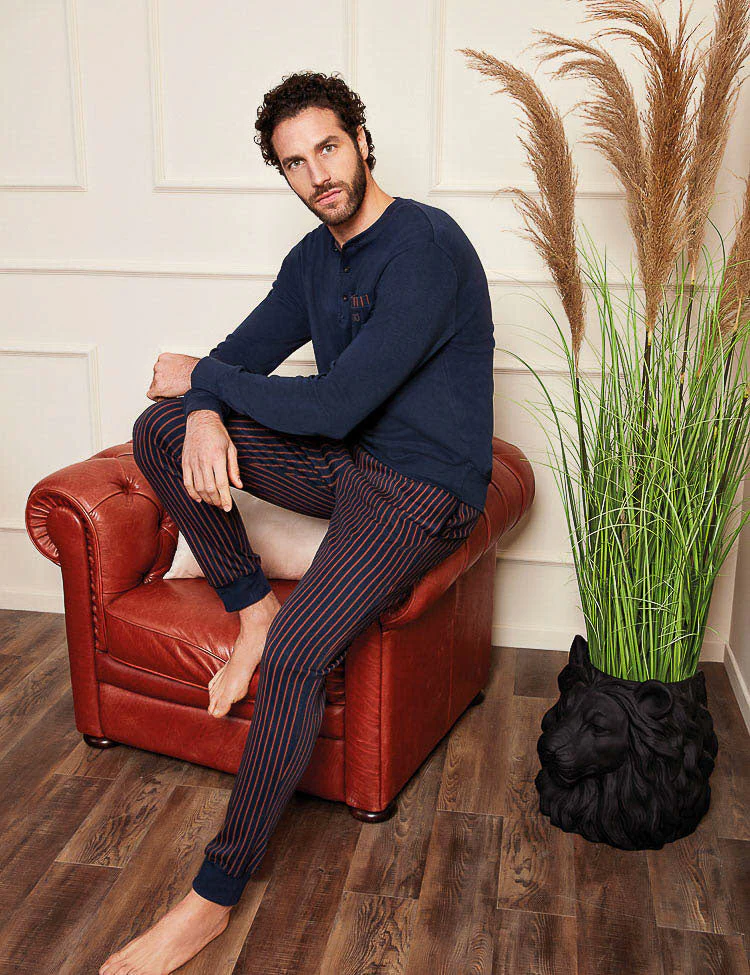 Serafino 3 bottoni manica lunga con polsini sul fondo della manica, un taschino. Pantalone lungo con polsini sul fondo. Composizione : 100%cotone