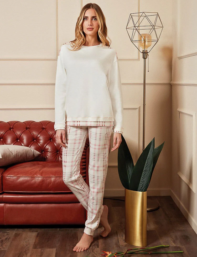 Girocollo manica lunga con polsino. Pantalone lungo con polsini sul fondo Composizione : 100%cotone