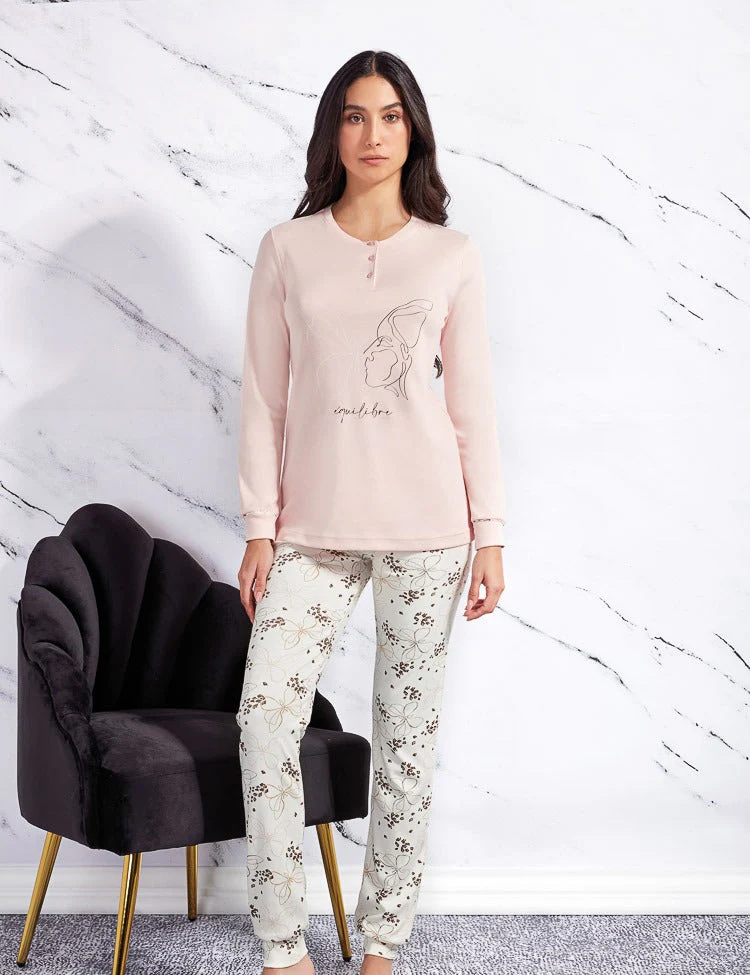 Un pigiama in caldo cotone per donna e’ l’ideale per le serate fresche, offrendo comfort e calore. La maglia ha una vestibilita’ morbida con 3 bottoni. I pantaloni sono realizzati in caldo cotone morbido con elastico in vita per una vestibilita’ comoda. Composizione : 100%cotone