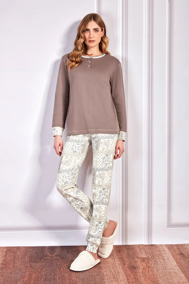 Un pigiama da donna in caldo cotone e’ il capo perfetto per affrontare le serate e le notti piu’ fredde con comfort, morbidezza ed eleganza discreta. Ô pensato per offrire calore naturale, senza rinunciare a un tocco di femminilita’ e stile. Composizione : 100%cotone