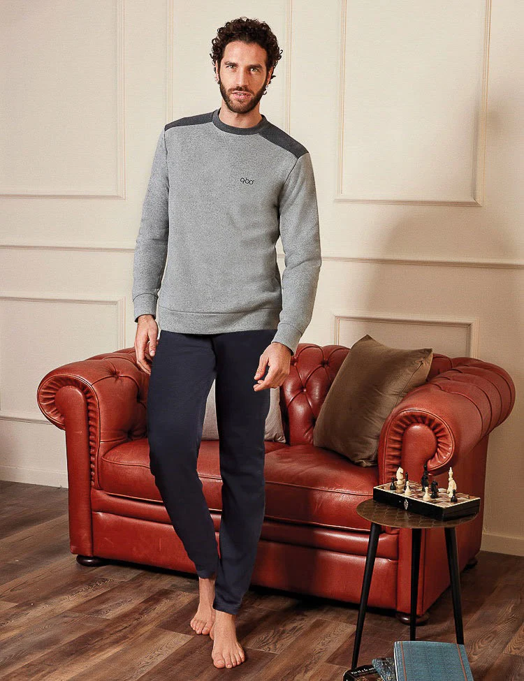 Girocollo manica lunga con polsini sul fondo della manica, pantalone lungo con polsini, ideale per il comfort durante il sonno o il relax in casa. Realizzato in morbido e caldo jacquard. Un capo versatile, il pigiama offre comfort e stile per momenti di riposo. Composizione : 50%cotone-50%poliestere