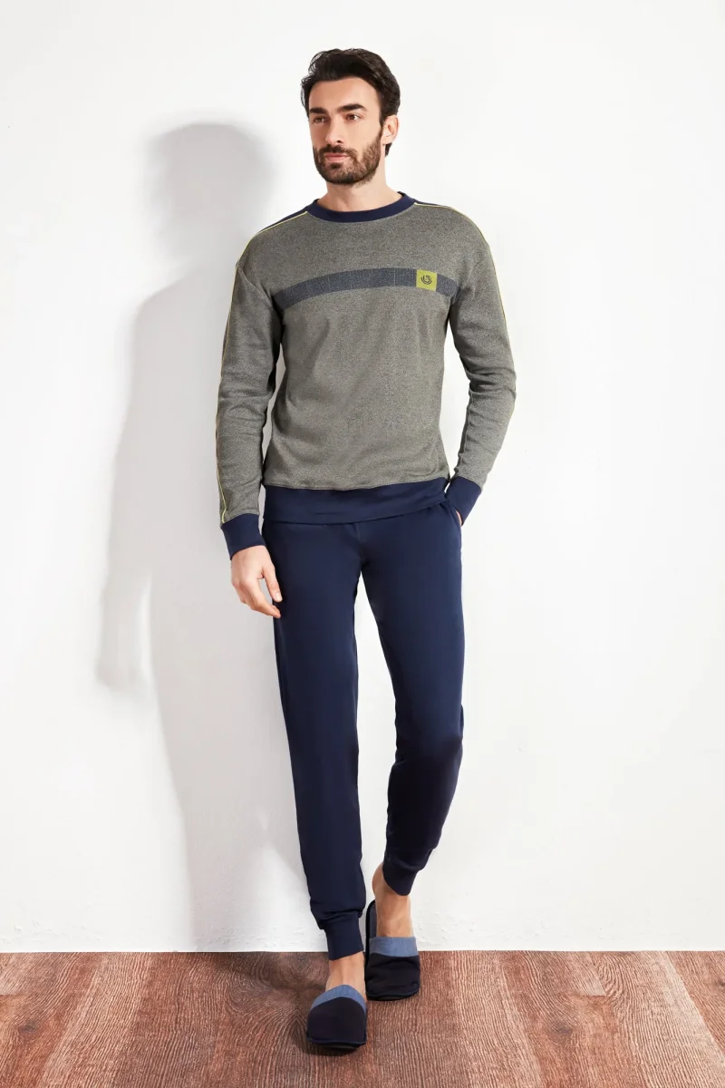 Questo pigiama da uomo e’ realizzato in caldo cotone morbido e traspirante, ideale per la stagione autunno/inverno. Il design essenziale con girocollo lo rende versatile e adatto allÉuso quotidiano. Composizione : 60%cotone-40%poliestere
