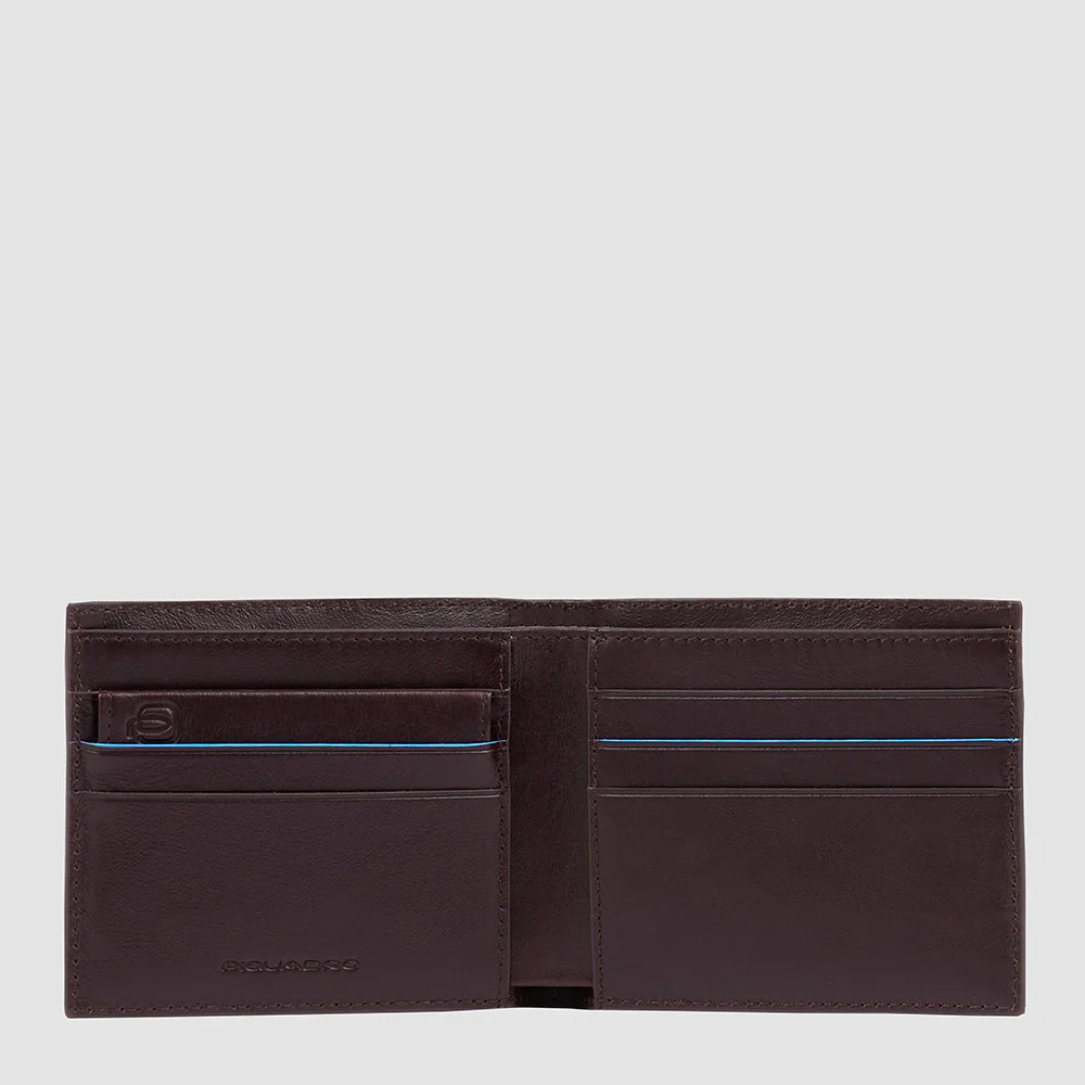 Portafoglio Piquadro di piccole dimensioni con 6 slots per carte di credito. Fodera dotata di sistema antifrode RFID. Doppio scomparto per banconote.