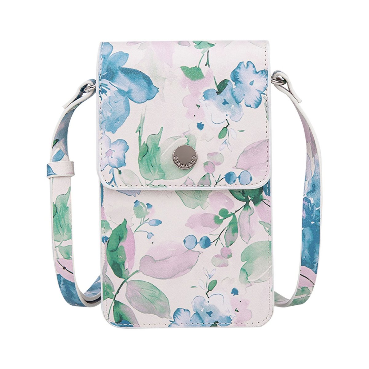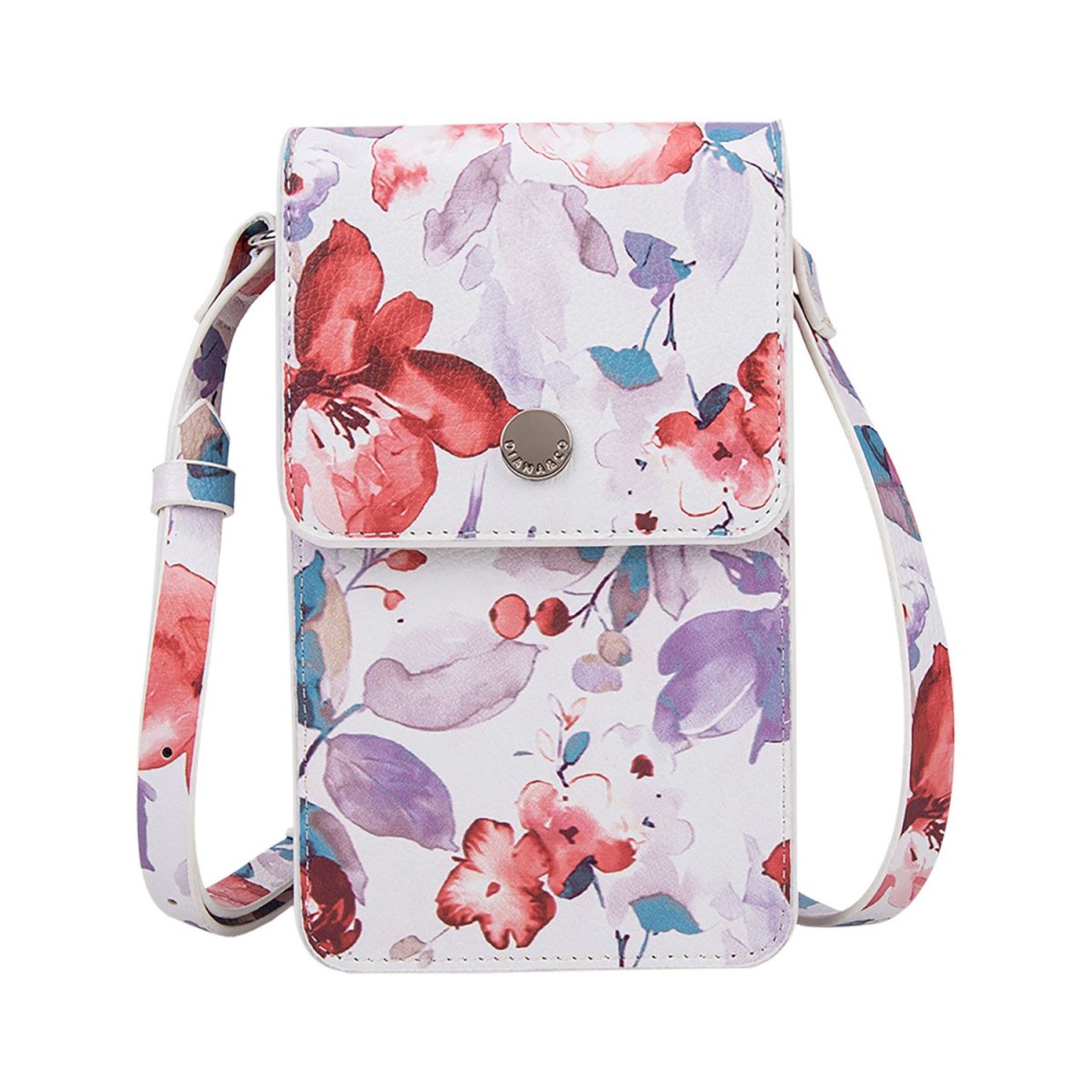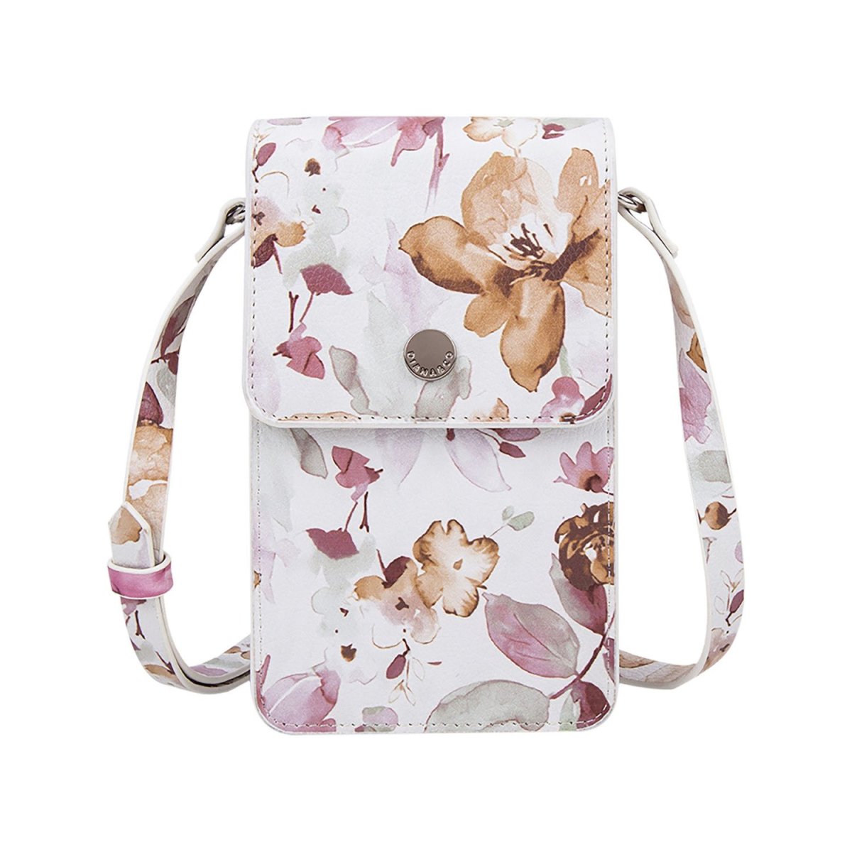 PORTA CELLULARE FIORITO PATTINA CON BOTTONE TRACOLLINA REGOLABILE REALIZZATO IN PU