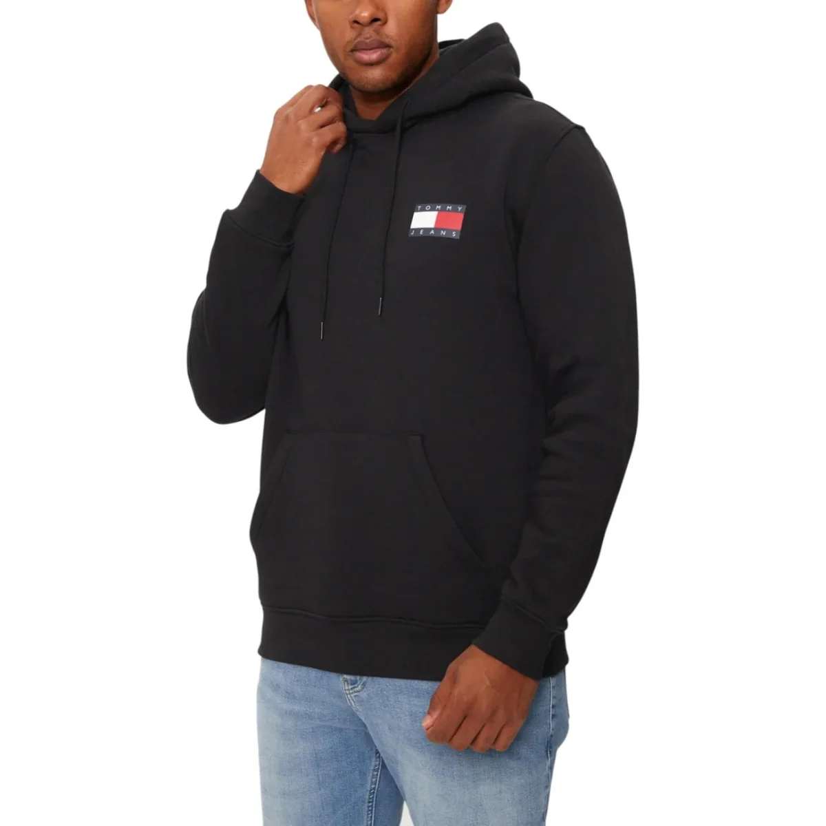 ๐ค Felpa Uomo Tommy Hilfiger Jeans Nera con Cappuccio Stampa Maniche Lunghe Scollo Tondo e Tasca Esterna in Cotone 80% Poliestere 20% – Stile Americano Iconico Autunno/Inverno