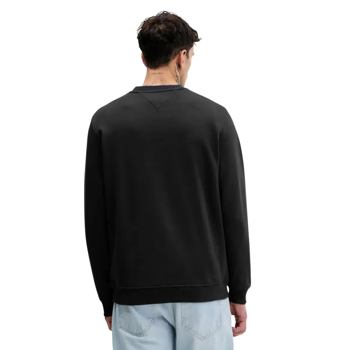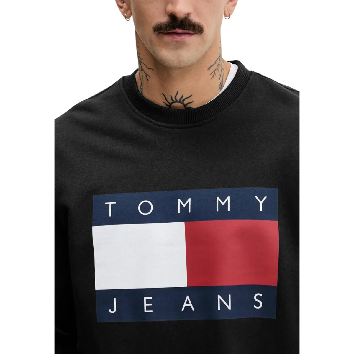 Tommy Hilfiger Jeans Felpa Uomo Nera Stampa Maniche Lunghe Scollo Tondo Cotone Organico 100% Primavera Estate DM0DM22643