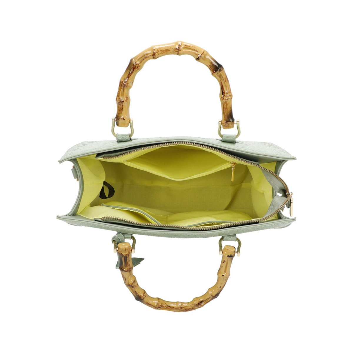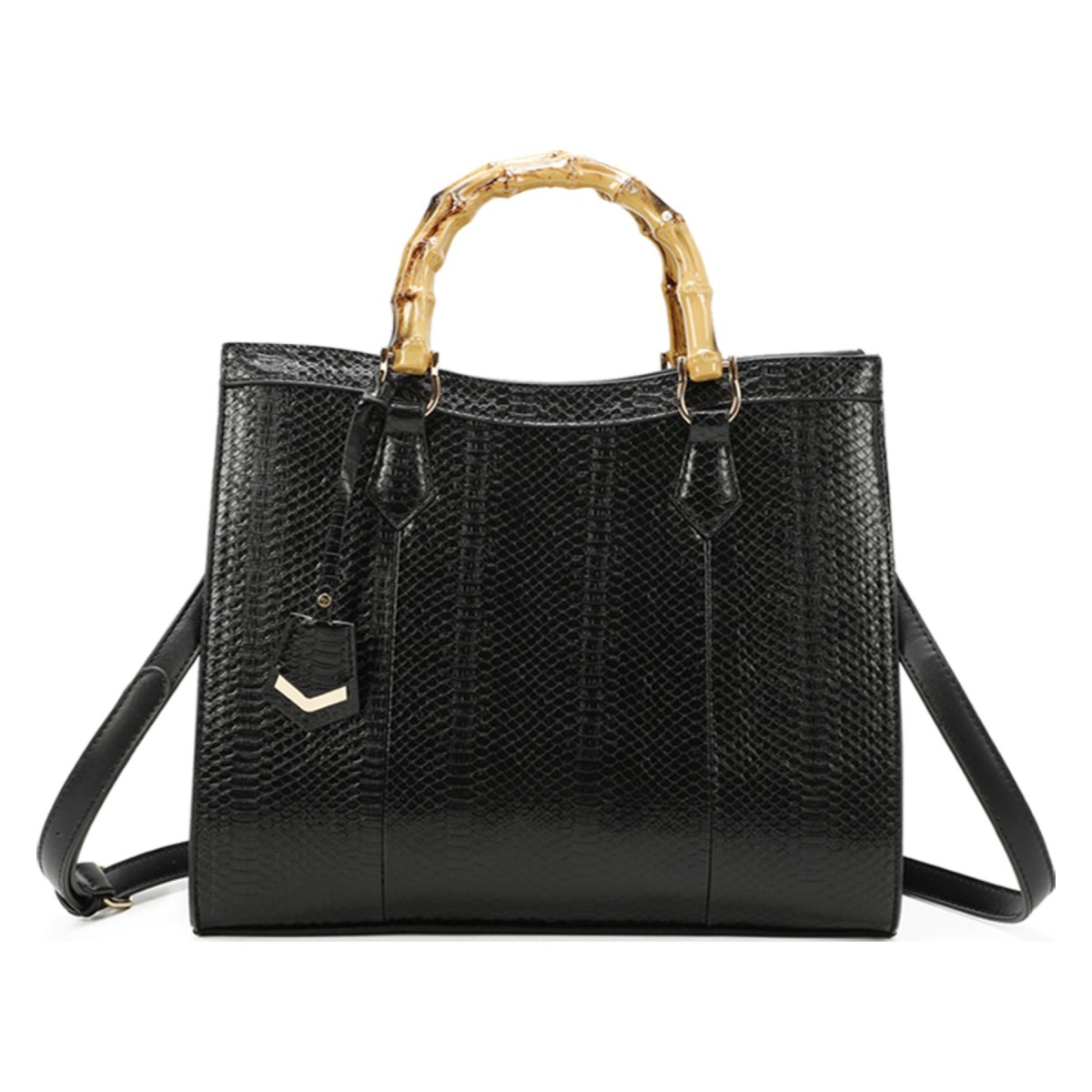 Borsa a mano con stampa pitone Manico in bambù sintetico Chiusura con zip Tracolla rimovibile e regolabile Ampio spazio interno con tasche porta oggetti Misura grande 34 cm x 28cm x 14.5cm
