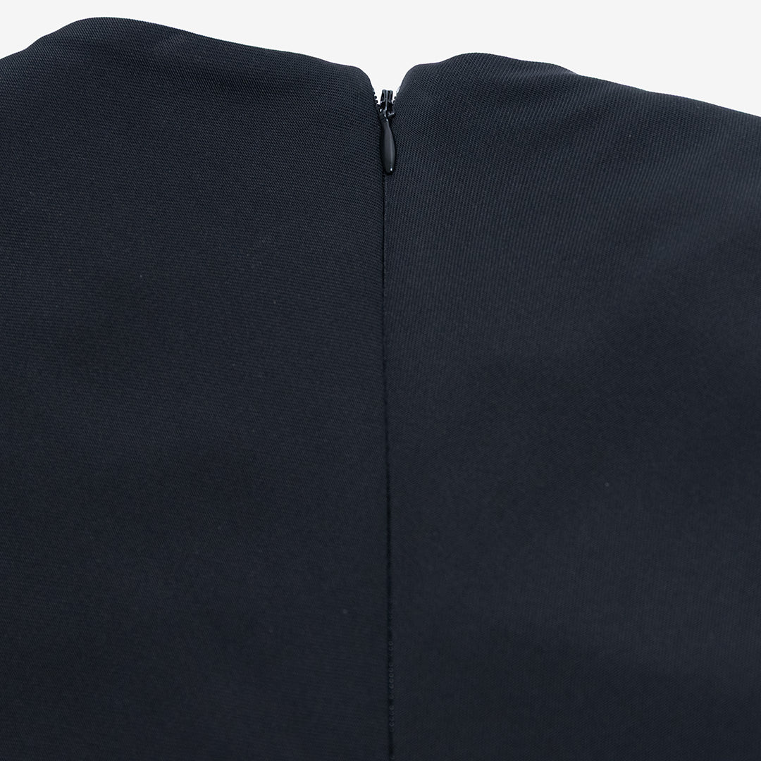 Chiusura posteriore con cerniera nascosta nella cucitura.